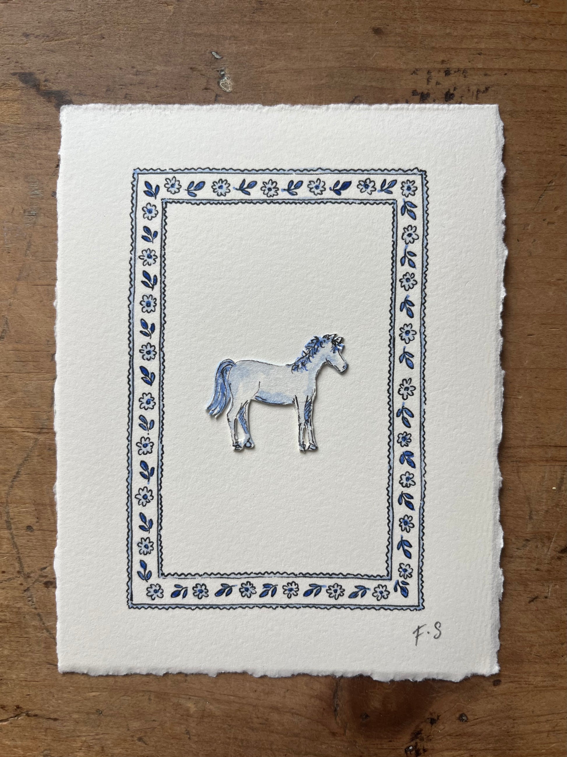 An original watercolour papercut miniature.