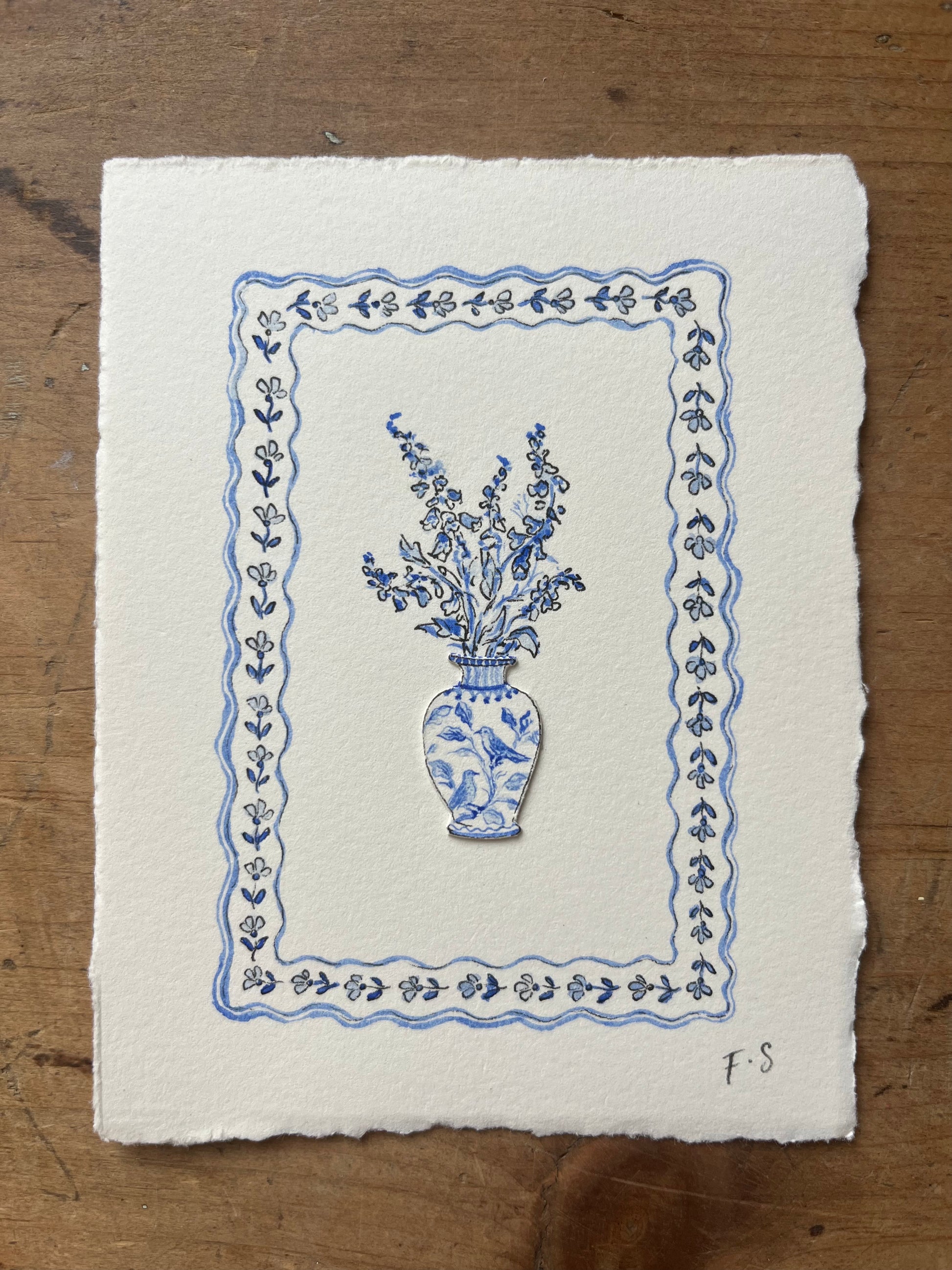 An original watercolour papercut miniature.